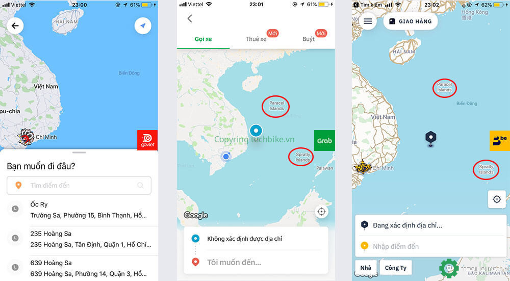 Hai quần đảo Hoàng Sa, Trường Sa biến mất khỏi bản đồ Việt Nam trên ứng dụng đặt xe Go-Viet.