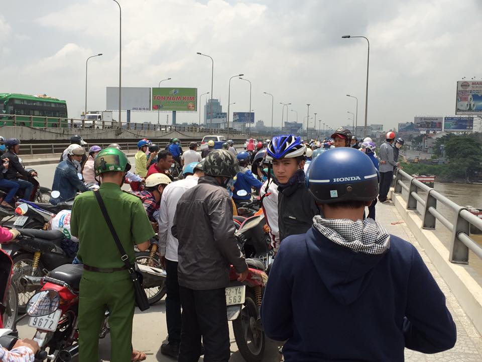 Rất đông người dân hiếu kỳ, đứng tụ tập trên cầu Đồng Nai.