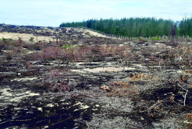 Hơn 140 ha rừng dương nằm trong diện tích được giao cho Công ty CP Phong điện Phương Mai để thực hiện dự án bị cưa, đốt sạch. (Ảnh: Trương Định)