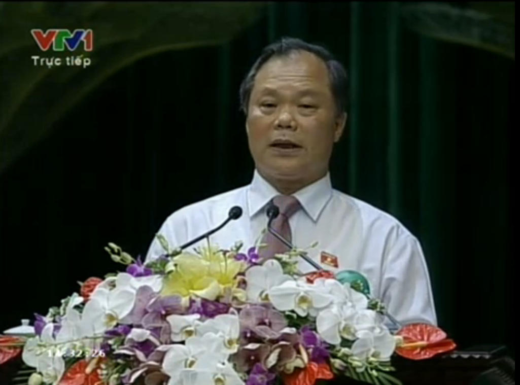 | Ông Phan Trung Lý trình bày bản giải trình, tiếp thu Dự thảo sửa đổi Hiến pháp năm 1992 trong phiên họp chiều nay. Ảnh cắt từ clip của VTV |
