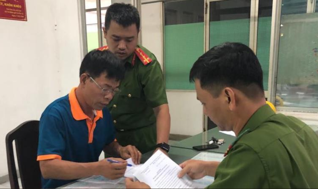 Ông Nguyễn Hải Nam làm việc tại cơ quan công an sau khi xảy ra vụ việc. (Ảnh: PLO)