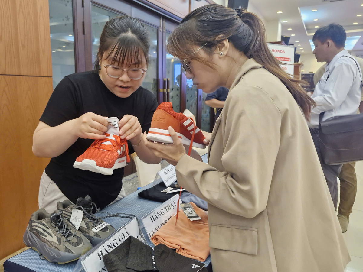 Giày thể thao là nhóm hàng đang bị làm giả, nhái rất nhiều và rất khó phát hiện bằng mắt thường. (Ảnh: H. Linh)
