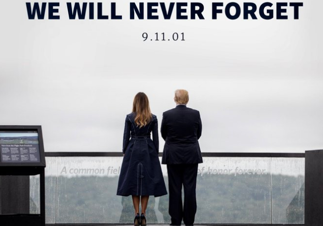 Tổng thống Trump đăng ảnh chụp cùng vợ tưởng niệm thảm kịch 11/9. (Ảnh: Twitter)