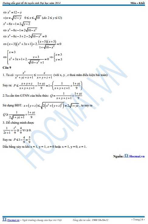 Đáp án môn Toán do các giáo viên uy tín của trung tâm Học Mãithực hiện. Thí sinh và người nhà có thể xem tại đây
