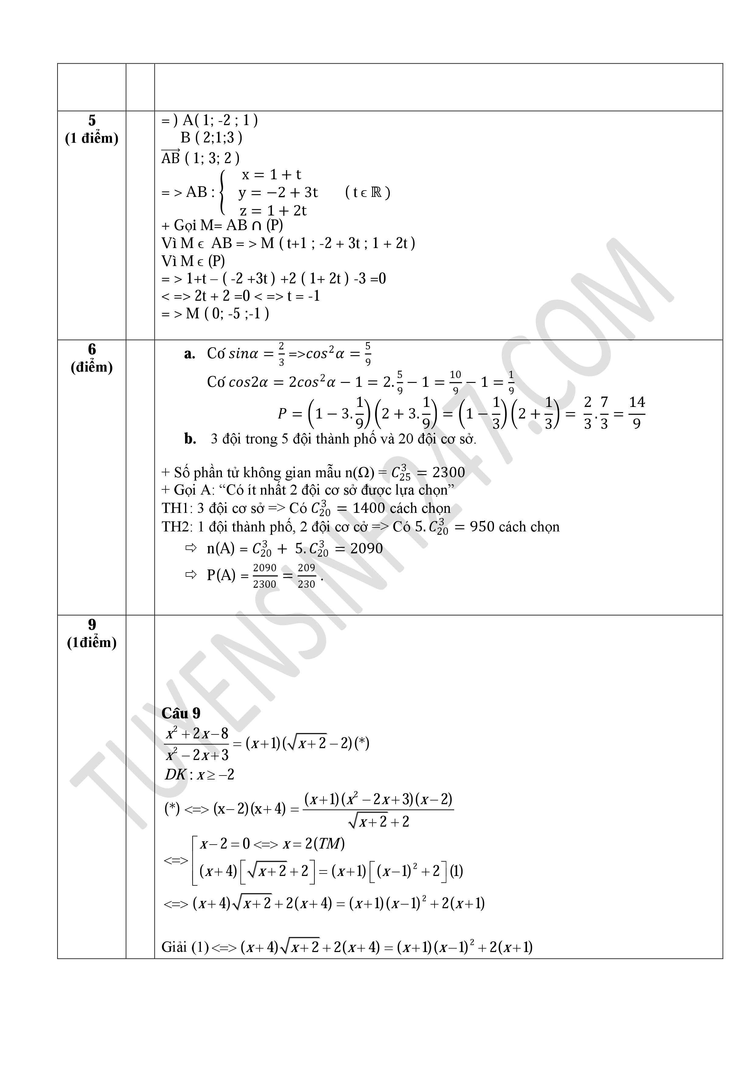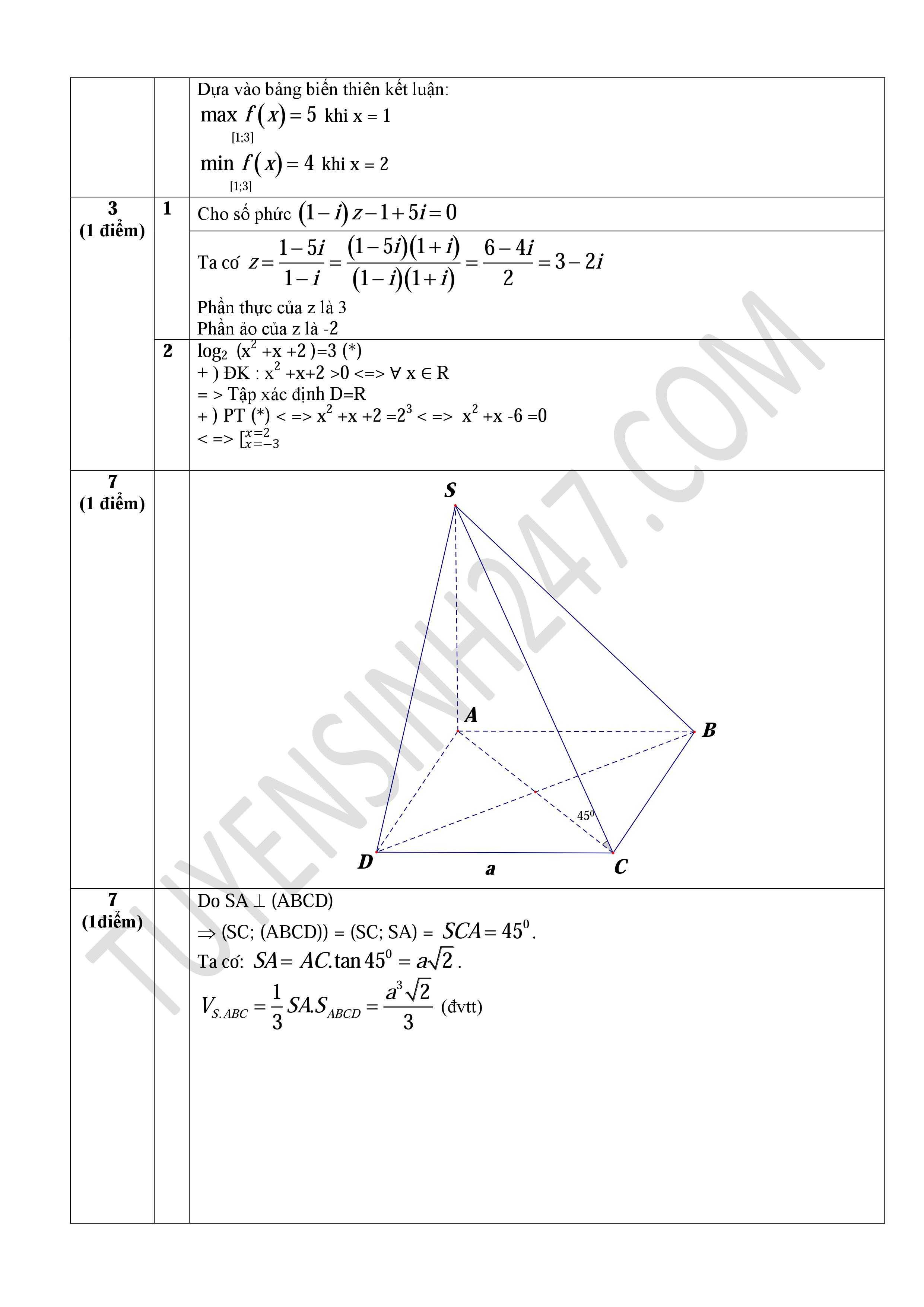 Đáp án môn Toán kỳ thi THPT quốc gia 2015: