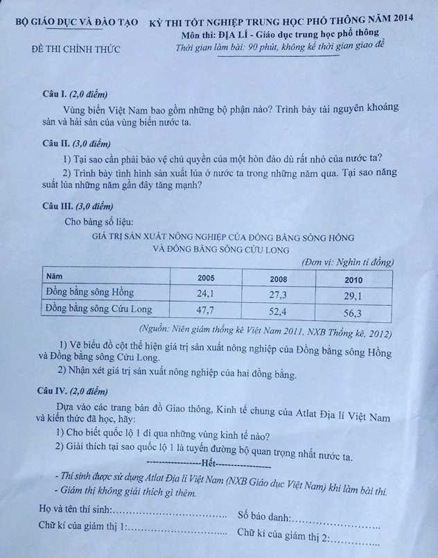 Nguồn: Hocmai.vn Đề thi tốt nghiệp THPT môn Địa lý năm 2014