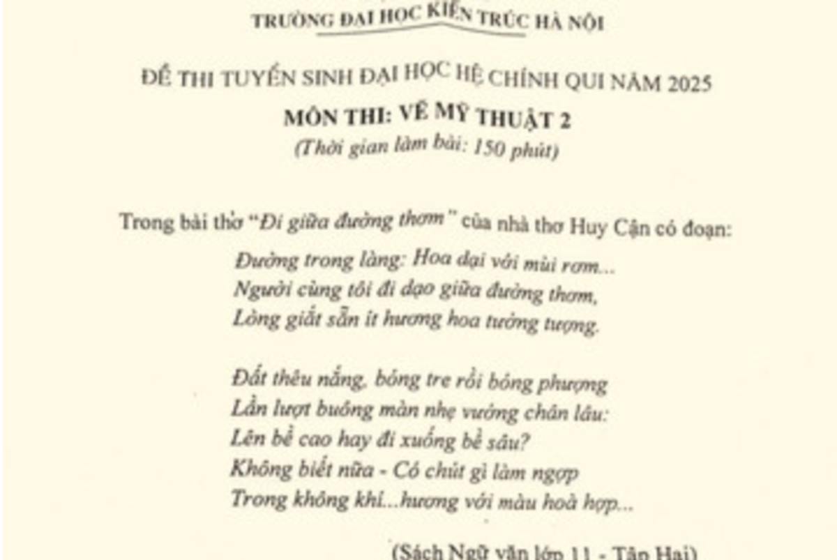 Đề thi môn Vẽ Mỹ thuật 2 tuyển sinh hệ đại học chính quy năm 2025 của trường Đại học Kiến trúc Hà Nội khiến nhiều người cảm thấy thú vị khi lướt qua ngỡ như một đề thi Văn.