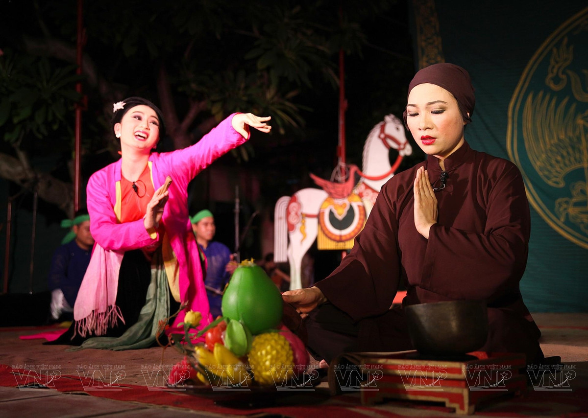 Trích đoạn Thị Mầu lên chùa trong vở chèo cổ Quan Âm Thị Kính. (Ảnh: TTXVN)