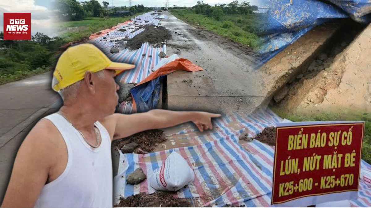 Một đoạn đê hữu Cầu qua xã Đa Phúc, Hà Nội nứt toác, sụt lún nghiêm trọng, chính quyền địa phương đã phong tỏa khu vực, cấm phương tiện lưu thông.