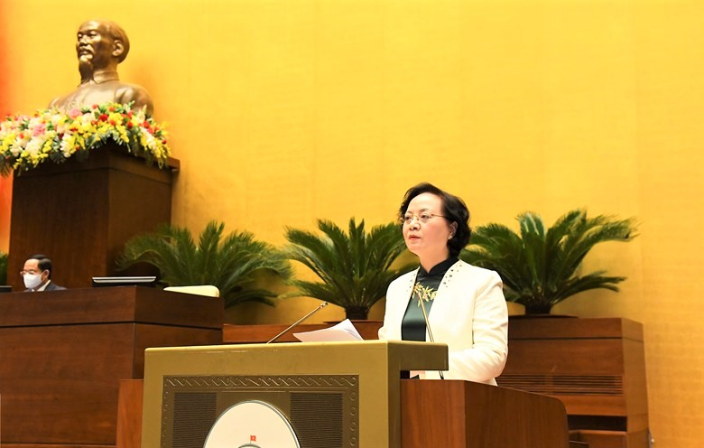 Bộ trưởng Bộ Nội vụ Phạm Thị Thanh Trà trình bày tờ trình về dự án Luật Thi đua, khen thưởng tại kỳ họp thứ 2, Quốc hội khoá XV.