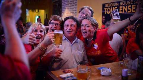 | Du khách uống bia xem World Cup 2014 sau 23h tại Q.1, TPHCM. Ảnh: T.T.D |