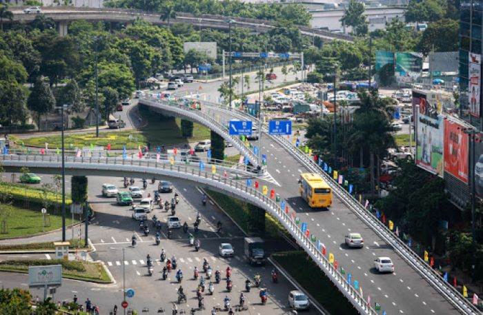 Cầu vượt ở cửa ngõ sân bay Tân Sân Nhất năm trong dự án giảm ùn tắc giao thông ở cửa ngõ sân bay.
