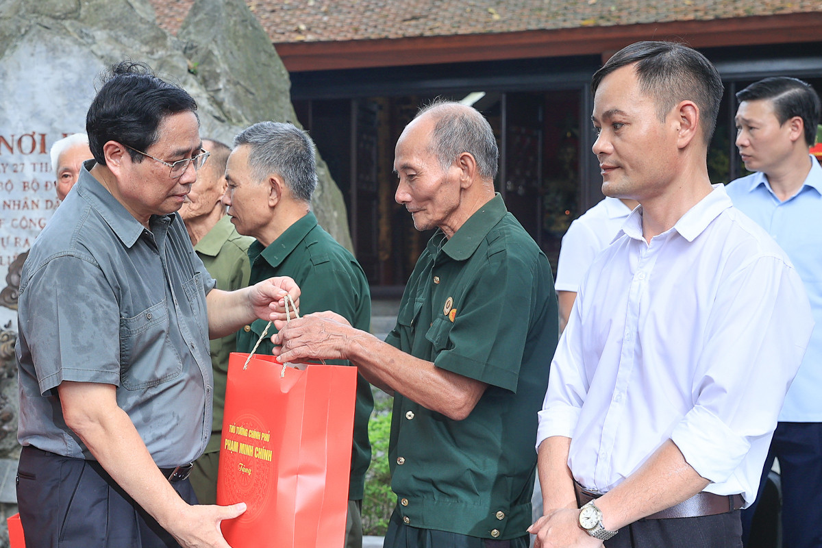 Thủ tướng Phạm Minh Chính tặng quà người có công với cách mạng và thân nhân liệt sỹ trên địa bàn huyện Đại Từ, tỉnh Thái Nguyên hồi tháng 7. (Ảnh: VGP)