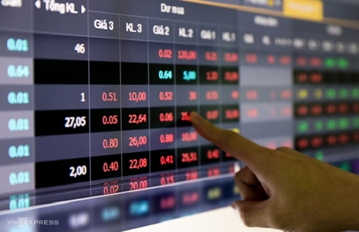 Nhà đầu tư theo dõi bảng giá khi thị trường giảm điểm ngày 16/3. (Ảnh: Quỳnh Trần)