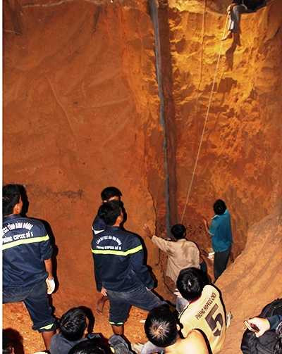 Lực lượng cứu hộ cứu nạn trắng đêm đào đất, vận chuyển đất ra ngoài, thòng dây chuyền ống hơi tiếp oxy, truyền nước cho bé gái. Lúc bé hoảng sợ, kêu khóc lớn, có lúc bé than mệt, buồn ngủ, khó thở các chiến sỹ cứu hộ phãi dùng lời lẽ nhẹ nhàng, trấn an, động viên bé.