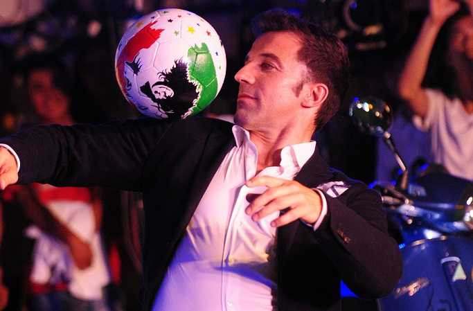 Del Piero diện suit tâng bóng trước sự chứng kiến của hàng trăm fan hâm mộ Hà Nội