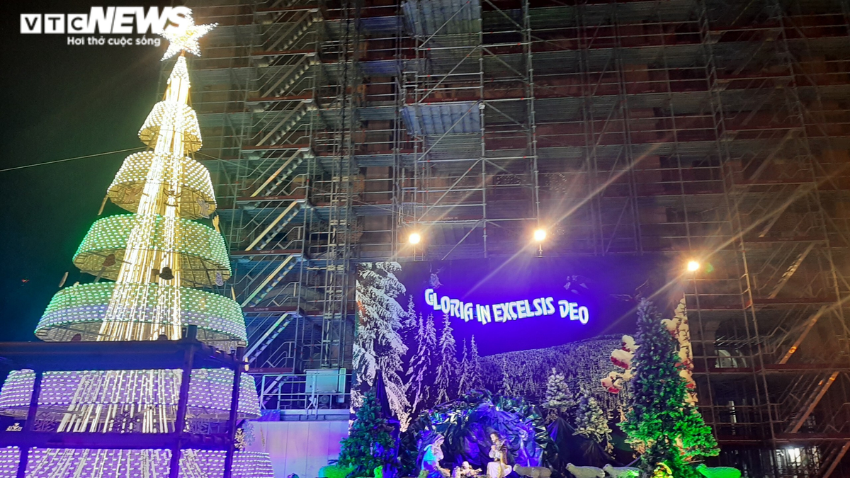 Cây thông và hang đá tại Nhà thờ Đức Bà Sài Gòn (quận 1, TP.HCM).