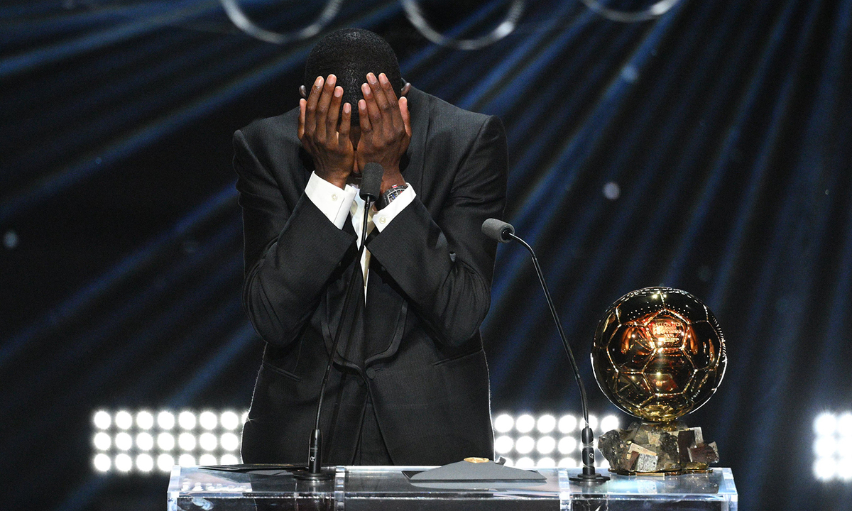 Phát biểu sau khi giành Quả bóng vàng, Ousmane Dembele gửi lời cảm ơn tới các đội bóng mà anh đã và đang khoác áo. Tiền đạo 28 tuổi bật khóc khi nhắc đến mẹ. Anh nói: "Cảm ơn mẹ tôi và cũng là người thân nhất luôn bên tôi ở mọi nơi".(Ảnh: Reuters)