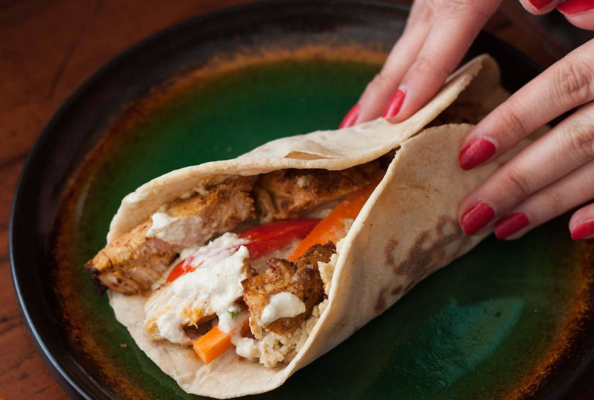 Tùy theo khẩu vị của thực khách mà thịt gà sẽ được gói với bánh mì pita, rumali roti hoặc tahini, hummus. Điều khiến món ăn này trở nên hấp dẫn đó là lớp vỏ bột mềm nhưng vẫn có độ giòn nóng nhất định. Khi ăn, thực khách sẽ vô cùng thỏa mãn khi cắn phần nhân ngập chân răng, từ từ cảm nhận mùi vị đậm đà, hòa quyện của thịt gà và sốt được pha chế từ sữa chua, nước cốt chanh, dầu ô liu, mùi tây và muối.