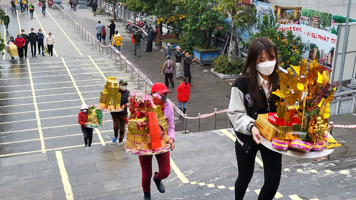 "Đến cửa Đền, tôi thấy ở đây đã chuẩn bị các thiết bị, biện pháp phòng chống dịch rất hợp lý và thường xuyên có lực lượng chức năng nhắc nhở người dân không tụ tập đông người, khi làm lễ xong nhanh chóng di chuyển ra xe để người khác vào lễ", chị Nguyên chia sẻ.
