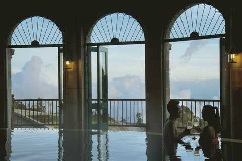 Các cặp đôi sẽ cùng tận hưởng những phút giây thư thái tại bể bơi nước nóng La Grotte nằm trong lòng Làng Pháp có tầm nhìn trải ra rừng nguyên sinh.