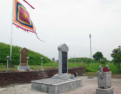 | Chiều ngày 14/5, trước một gò mộ vua Trần, một tấm bia đá và một tấm bia đá ốp đồng vẫn 'án binh bất động' |