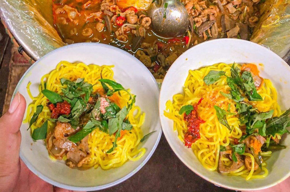 Bún nghệ với 3 thành phần chính là bún, nghệ và lòng lợn. (Ảnh: quynhnhu_1107)