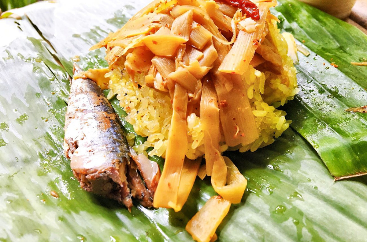 Món ăn được chế biến từ những vị rất quen thuộc như xôi, măng, cá… nhưng khi kết hợp với nhau lại mang đến một hương vị lạ, gây tò mò cho người thưởng thức.