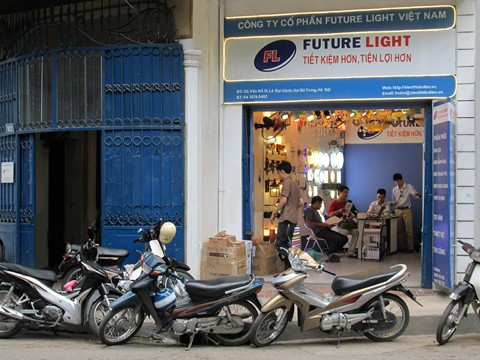 Dựa theo lời kể của bác Tính, chúng tôi tìm đến phố Vân Hồ 3 hỏi thăm thì được người dân chỉ đến công ty Future Light Việt Nam. Cảm nhận của chúng tôi lúc bước vào cửa hàng của công ty này là cửa hàng có khá đông khách hàng đang được tư vấn. Chúng tôi rất bất ngờ khi thấy một cửa hàng bán đèn có khá đông khách hàng lại ở trong một con phố nhỏ.