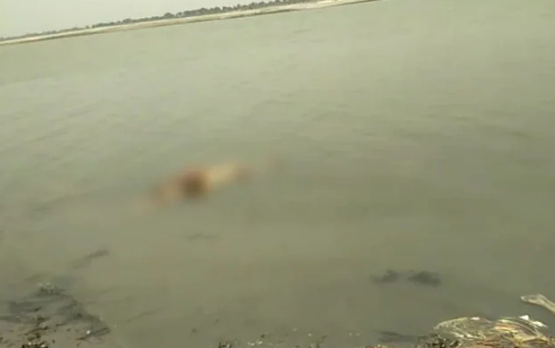 Một thi thể trôi nổi trên sông Hằng. (Ảnh: NDTV)