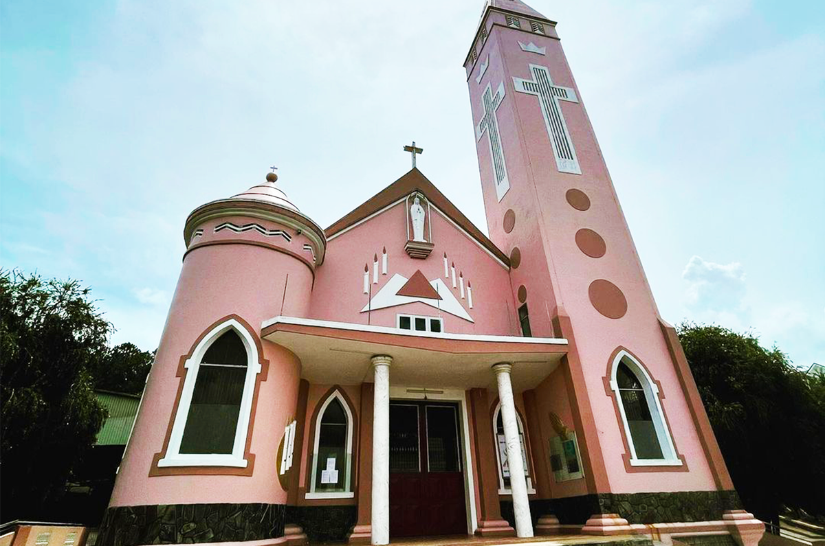 Vượt qua con đường dốc uốn lượn để đến với địa chỉ số 89 Thánh Mẫu, phường 7, thành phố Đà Lạt, du khách sẽ nhìn thấy thấp thoáng một căn nhà thờ mang sắc hồng nhạt nổi bật.