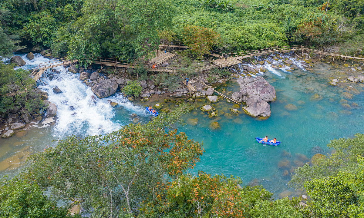 Có một điều đặc biệt là dù đông hay hè, nắng hay mưa thì dòng suối vẫn có màu nước xanh ngọc bích, bắt nguồn từ hệ thống sông ngầm bí ẩn chảy trong lòng các dãy núi đá vôi chảy ra với nhiệt độ chỉ khoảng 20 độ C. Không gian của núi rừng sẽ đem đến cho du khách những khoảng khắc thư thái, gạt bỏ muộn phiền mà cảm nhận sự tươi mát, trong lành của thiên nhiên.