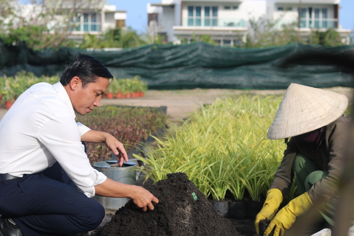 Anh Ngô Đức Thính (trái) là chuyên viên quản lý cảnh quan của Alma Resort. Nguồn: Alma