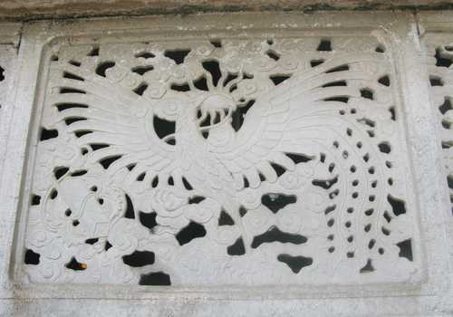 Phía ngoài và bên trong phương đình có những bức phù điêu khắc chạm trên đá mô tả “15 phép mầu nhiệm Mân Côi” với đường nét thanh thoát gợi cảm.