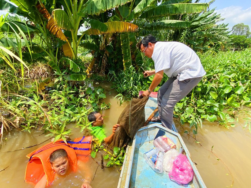 Cùng gia đình đi xem mùa nước nổi, cháu Ken (9 tuổi, ở TP. Long Xuyên, An Giang) tỏ ra phấn khích: “Con thích nhất món cá linh chiên bột, ăn với bông điên điển. Con cũng thích tắm lũ. Nước ở đây mát lạnh. Con được đi thăm đú, bắt cá linh, cua, tôm… thích lắm. Đây là lần đầu tiên con khám phá mùa nước nổi với ba mẹ nên rất vui”.