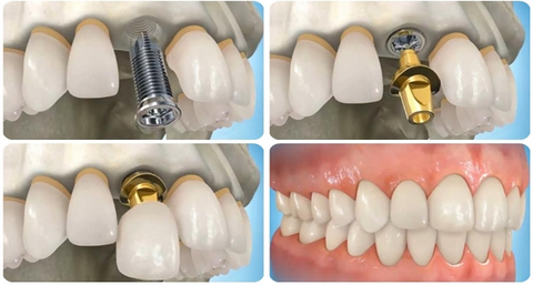 Sau khoảng thời gian nhất định khi trụ Implant bám chắc hoàn toàn vào xương hàm, tiếp theo bác sĩ sẽ gắn lên một mão răng sứ giống hệt như răng thật. Implant nha khoa là một phát minh khoa học hiện đại, phù hợp sinh lí tự nhiên và không gây tổn hại đến cơ thể.