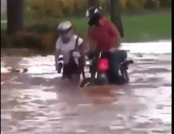 Đèo bạn gái qua đường ngập nước, vấp cống ngã chổng vó