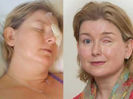 Cô Jacqueline Stone, 42 tuổi đã bị khoét bỏ mắt trái, 17 tuần nằm việc sau khi đeo kính áp tròng chỉ trong vòng một ngày.