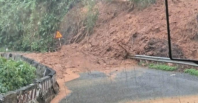 Hôm nay, địa phương xảy ra mưa lớn, đất đá từ taluy dương tràn xuống mặt đường. Thời điểm này, có nhiều người dân và phương tiện đang lưu thông qua vị trí.