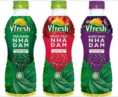 Dòng sản phẩm Vfresh Nha Đam có 3 hương vị cho bạn thỏa thích lựa chọn, gồm: Trà Xanh Nha Đam, Nước Nho Nha Đam, NướcTáo Nha Đam, được đóng trong bao bì chai nhựa mới và năng động hơn, với giá không đổi chỉ 8.000 đồng / chai. Vfresh Nha Đam Mới – Cho làn da tươi tắn đầy sức sống.