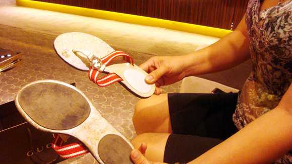 “Tôi bỏ ra gần 5 triệu đồng để mua một đôi dép hiệu Gucci tại cửa hàng thời trang Gucci (63 Lý Thái Tổ, quận Hoàn Kiếm, Hà Nội) cho con gái, vậy mà con tôi vừa đi được một ngày, đôi dép đã bong tróc bề mặt da, trông chẳng khác nào hàng rởm…”.