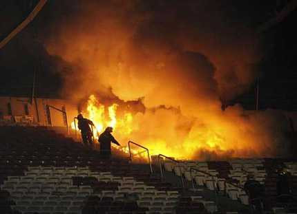 BTC đang điều tra kỹ lưỡng xem CĐV của Benfica hay Sporting Lisbon gây ra vụ cháy trên sân Da Luz. |