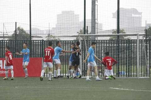 Ở sân đấu cùng giờ bên cạnh, 2 đội bóng được đánh giá khá “đồng cân đồng lạng” Huỳnh Thúc Kháng và Ngọc Lâm đã có thế trận khá giằng co trong suốt hiệp thi đấu đầu tiên. Tuy nhiên, cuối hiệp 1, Ngọc Lâm đã may mắn có được bàn thắng dẫn trước khi thủ môn đến từ Đà Nẵng thi đấu lập bập, để bóng trôi vào lưới.