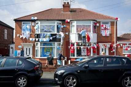 | Những người hàng xóm trang trí lại nhà chờ Derby Manchester. |