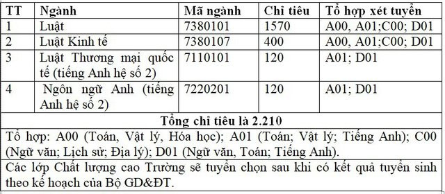 Mùa tuyển sinh năm 2018, ĐH Luật Hà Nội có 2 phương thức xét tuyển: