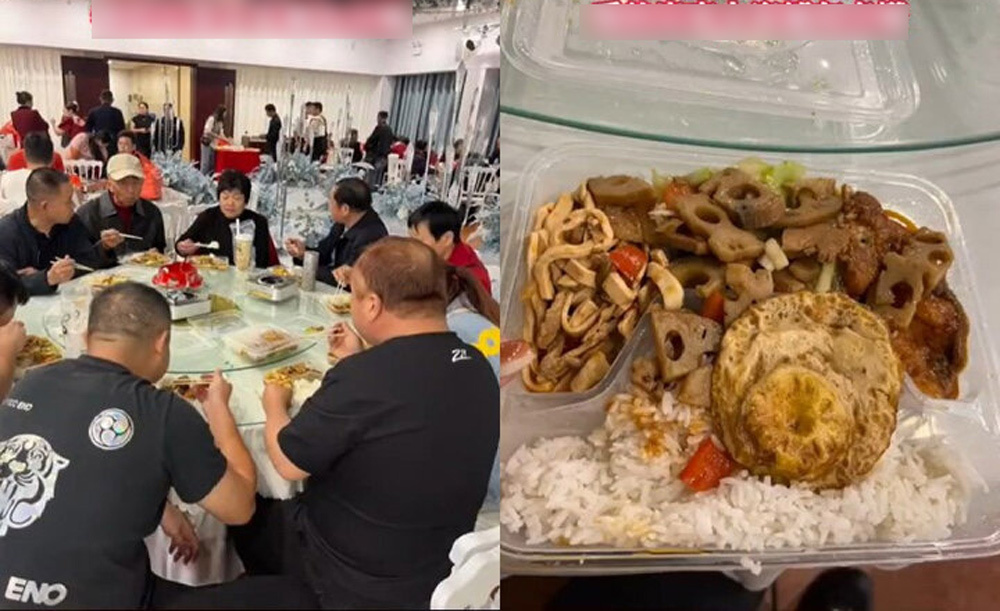 Một đoạn video ghi lại cảnh khách dự đám cưới đang thưởng thức bữa ăn đóng gói sẵn được một người đăng tải cách đây vài ngày khiến cư dân mạng Trung Quốc "mắt tròn mắt dẹt".