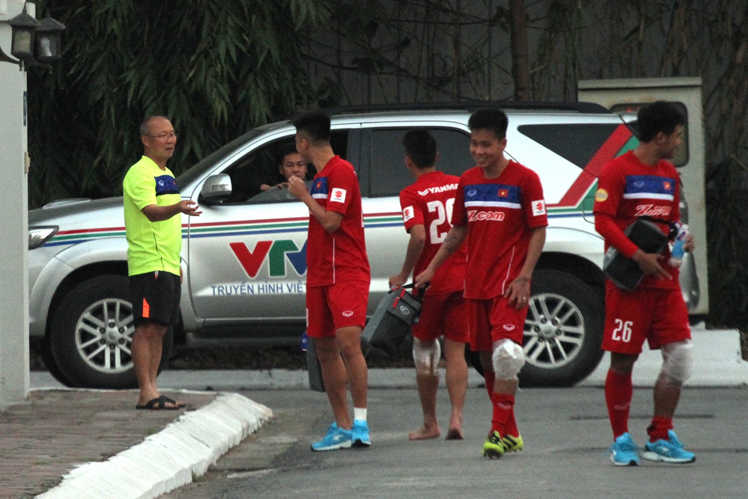 Do ở rất gần sân tập, một số tuyển thủ đã tháo giày và đi chân đất về phòng nghỉ. Nhận thấy điều này, HLV Park Hang Seo đã ngay lập tức nhắc nhở các học trò. Có lẽ HLV người Hàn Quốc lo lắng rằng việc đi chân đất trên đường có thể khiến cầu thủ bị đau chân, thậm chí dẫn tới chấn thương không đáng có.