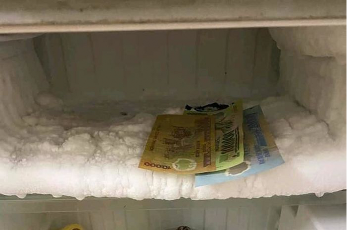 “Đây là vợ tôi mọi người ạ. Đi chợ về ѕợ trời nắng nóng thiu tiền nên phải cất ngay tiền vào tủ lạnh. Xong đứng làm đồ ăn cứ lầm bầm là không hiểu rơi tiền ở đâu” – Anh chàng hài hước chia sẻ. Kèm theo lời “tố” đó là bức ảnh chiếc tủ lạnh với những tờ tiền được xếp gọn, nằm chễm chệ trong ngăn đông.