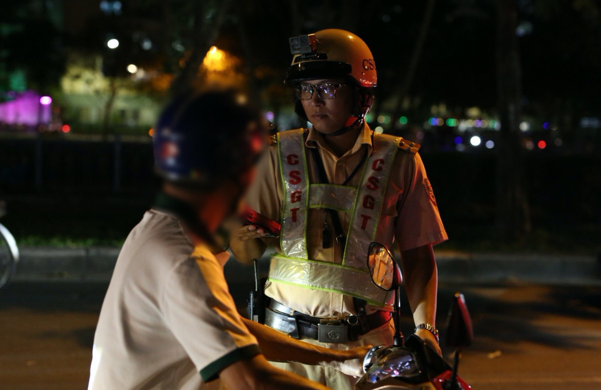 Khoảng 21h45, anh N.H.N. (24 tuổi, ngụ TP Thủ Đức) lái xe máy chở vợ về nhà sau bữa tiệc sinh nhật trên đường Hoàng Sa (quận 1), cũng bị CSGT kiểm tra phát hiện nồng độ cồn mức 0,523 mg/lít khí thở.