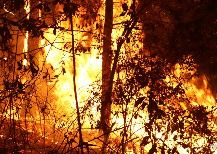 Trước đó, khoảng 15h ngày 29/6, ngọn lửa bùng phát trở lại trên dãy núi Thiên Nhẫn thuộc xã Khánh Sơn, huyện Nam Đàn và kéo dài đến đêm.